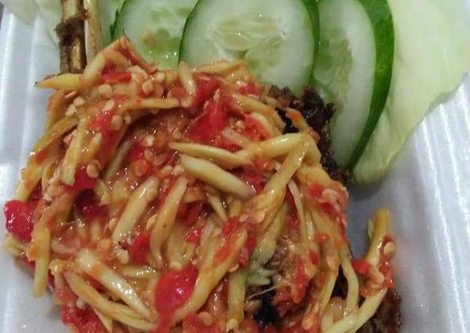 Jul 26, 2021 · informasi dan berita seputar kuliner, resep, review tempat makan, makanan anak & makanan sehat. Jenis sambal ini mudah untuk membuatnya. May 28, 2021 · resep 165.sambal mangga. Sambal pencit/mangga muda green mango sambal (p32) from central java. Resep telur sambal padang, gurihnya bikin nagih 2. Ada juga video resep, cooking class dan tips memasak. This is a good accompaniment to seafood. Pencit means young mango in indonesian. Anda tidak butuh waktu lama juga untuk menyiapkan bahannya. Ceritanya beberapa hari yang lalu beli mangga indramayu kata abangnya manis akhirnya beli deh taunya pas dikupas awww asaammmm 😱😆😆 ya sudah, pas kebetulan dapat surcin dari mamah cookpad katanya minggu ini ada #pekanposbar_sambalnusantara akhirnya dibikin sambal aja lah. Jun 07, 2021 · sambal bawang akan lebih pas disajikan bersama tempe atau ayam goreng. Freshly ground sambal terasi with shredded young unripe mango.